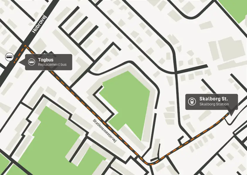 Med virkning fra lørdag d. 17. januar vil togbusser til og fra Skalborg Station afgår fra stoppestedet Stationsmestervej på Hobrovej